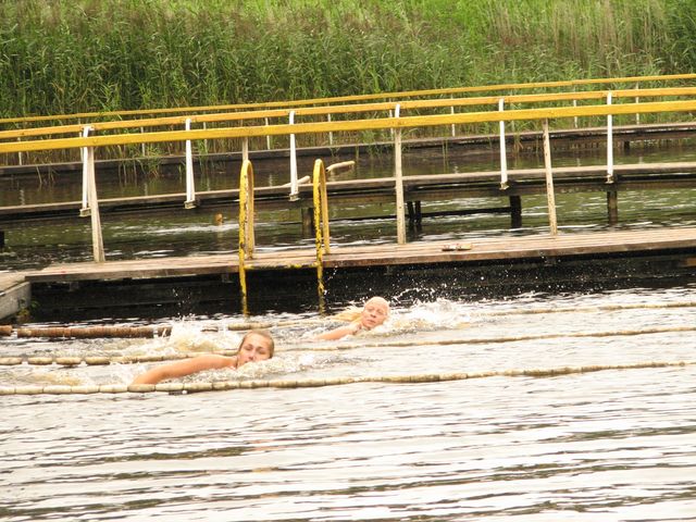 Sporta svētku disciplīnās bija iekļauta arī peldēšana. Kaut arī sākotnēji likās, ka drēgnais laiks šī sporta veida cienītājus būs nobiedējis, kā apgalvoja daži no drosmīgajiem pēc distances veikšanas, ūdenī esot pat siltāk nekā uz sauszemes… Vīriešu konkurencē lielisku peldētprasmi nodemonstrēja un nepārspēts palika kandavnieks Artūrs Dreimanis, 2. – Mario Fomičevs, bet 3. – Juris Augustāns – abi no Pūres. Sieviešu konkurencē 1. vietā ierindojās Anna Spīgule, bet 2. – Anete Meikšāne, abas no Rīgas.