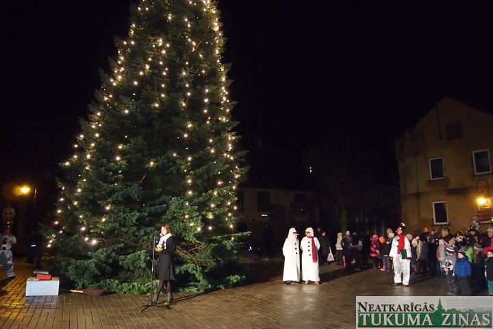 Trešdien, 11. decembrī, vakarā, kad pilsētu jau ieskāva tumsa, Kandavas Promenādē iemirdzējās svētku egle. Sniega māte skopojās, bet viņas kļūdu labot centās daži ņipri sniegavīri, aicinot visus klāesošos uz jautru dziesmu šovu, ko kuplināja vairāki novadnieki, sknīgu balsu īpašnieki. Domes priekšsēdētāja Normunda Štoferta aicināta, svētku eglei izgaismoties palīdzēja tās līdzšinējā saimniece Skaidrīte Šneidere.