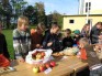 Visbeidzot – pabijām arī Zemītē, kur agrā Miķeļdienas pēcpusdienā jau teju visu no piedāvātā tirdziņa apmeklētāji bija notiesājuši – gan vafeles ar medu, gan kēksus ar ievārījumu un citu labumus. Tomēr, lai tirgošanās nebūtu tik vienmuļa, arī te bija iespēja noskatīties īpaši šiem svētkiem veltīto teatrālo uzvedumu, kuru uz skolas kāpnēm izrādīja 4. klase. Par piedalīšanos rotaļās ar tautisku piesitienu katras varēja dabūt saldu našķi.