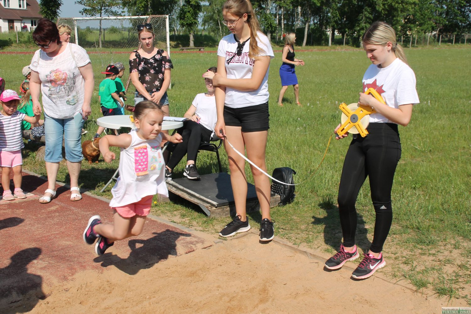 Kā kārtīgā olimpiādē pienākas, bija gan svinīgā līnija un uzrunas pasākuma atklāšanā, gan arī simboliska olimpiskās lāpas ienešana, un šis darbiņš šogad tika uzticēts jaunajai vieglatlētei Agnesei Besikirskai. Starp citu, Kandavas sporta skolas vecākajiem audzēkņiem šis ir teju vai obligāts pasākums, jo kopā ar skolas direktoru un treneri Induli Matīsu, novada sporta organizatoriem jāpiepalīdz gan startus sacensībās dot, gan fiksēt rezultātus, kā arī pieskatīt, lai katra mazo sportistu grupiņa nonāktu vietā, kur kāda disciplīna atkal pieveicama. Disciplīnas arī bija ierastās – skriešana, futbola spērieni un basketbola metieni, kā arī tālā lēkšana no vietas.