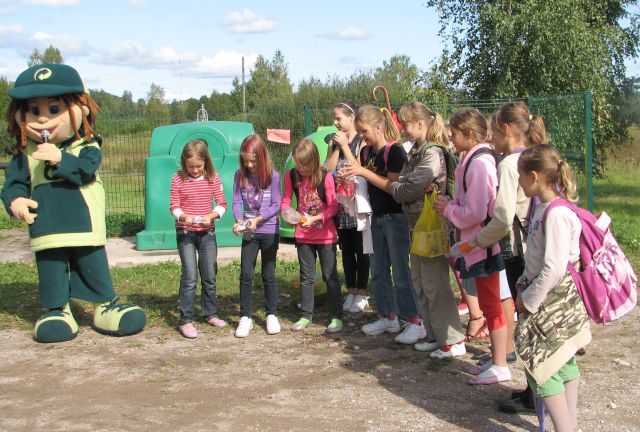 Svinīgajiem ievadvārdiem sekoja tradicionālā objekta atklāšanas lentas pārgriešana. Jāteic, ka pat lentu krāsa bija izraudzīta atbilstoši košajiem konteineriem – koši zaļa un dzeltena. Šo procedūru vēl saistošāku darīja Artas Jēkabsones skanīgais dziedājums. Bet turpinājumā aktīvu līdzdalību visā notiekošajā ņēma arī Punktuālis no Latvijas Zaļā punkta, kurš visus atnākušos interesentus iesaistīja dažādās aktivitātēs, piemēram, PET pudeļu placināšanā. Ar šo pārbaudījumu bija jātiek galā gan augstajām amatpersonām, gan arī 4. klases skolēniem, kuri bija atnākuši uz tikšanos ar zaļo draugu. Uzvarētāju gods tika tiem, kuri PET pudeli saplacināja visvisvairāk un tā izrādjās – meiteņu komanda. Balvā uzvarētājām bija piezīmju blociņš, bet zēniem par centību – atstarotājs.