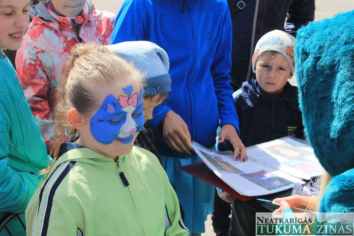Svētkus ar kopīgām dejām un dziesmām ievadīja rotaļniece Jogita Pūpola kopā ar Blīkšķu Baniju – samtaini pelēku multeņu garausi, ar kuru katrs varēja bildēties, cik tīk.