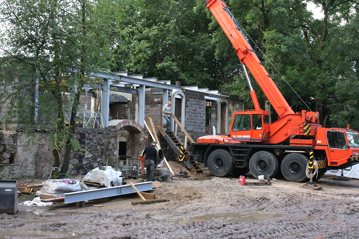 Dzirnavās saimnieko būvinženieris Elmārs Ločmelis. Ēkai jau uzbūvēts stāvs, nu liks jumtu, mansardu izbūvēs. Top pārējās saimniecības ēkas.