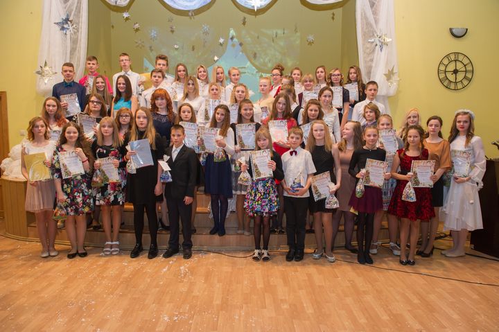 Mēs varam būt gandarīti, jo mums ir savas zvaigznītes: skolas direktore Elita Lavrinoviča pasniedza dāvanas centīgākajiem mācībās un izpalīdzīgākajiem ikdienas solī – un mūsu skolā to ir daudz – kopskaitā 126, kas ieguvuši Zelta, Sudraba liecības vai Atzinības rakstu par labiem sasniegumiem mācībās. Klases eglītē katrs tika pie pārsteiguma, jo par labajiem darbiem rūķi dāvanas sagādājuši visiem.