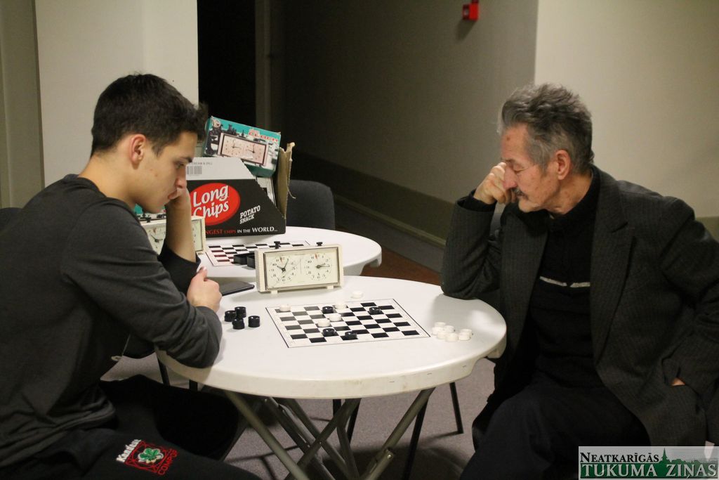 Citā stratēģiskā disciplīnā jeb dambretē tik spīdoši vis negāja, jo, izņemot godalgoto kandavnieku Aleksandru Krīvānu, citi pretendenti uz turnīra balvu ieradušies nebija. Tikvien kā mierinājums, ka rīta pusē Aleksandrs bija iespējis paviesoties kaimiņu novadā – Talsos – un no tur notiekošajās sacensībām veterāniem viņš mājās bija pārvedis sudraba medaļu, pats solot, ka drīz vien atspēlēsies vai vismaz pacīnīsies arī par zeltu.