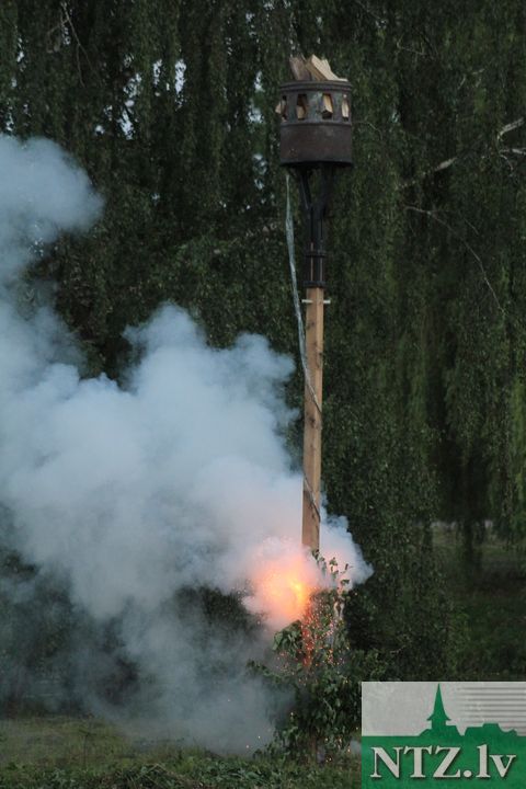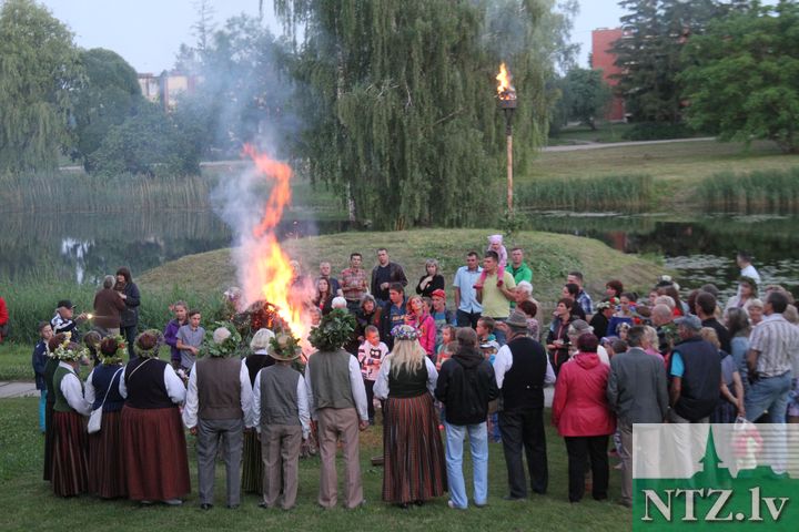 22. jūnijā arī pie Slampes kultūras pils līgoja. Līgotājus ar koncertu iesildīja slavenais akordeona virtuozs Māris Balaško, kurš savu instrumentu spēja pārvērst, gan ērģelēs, gan simfoniskajā orķestrī. Vēlāk visus aplīgoja folkloras grupa “Pūrs”, bet vainadziņu nēsātāji piedalījās konkursā par krāšņāko svētku galvas rotu. Saulrietā ar blīkšķi tika iedegta pundele uz dīķa salas, lēnām sāka kūpēt lielais ugunskurs, kurš, sildot līgotājus, dega līdz pašam rītam, bet dīķa ūdens spogulī spoguļojās spoguļu un uguns instalācija no mākslinieka Jāņa Jansona.