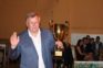 Kāds sakars “stirnu bukam” ar šo resno mūli gaišājā žaketē?