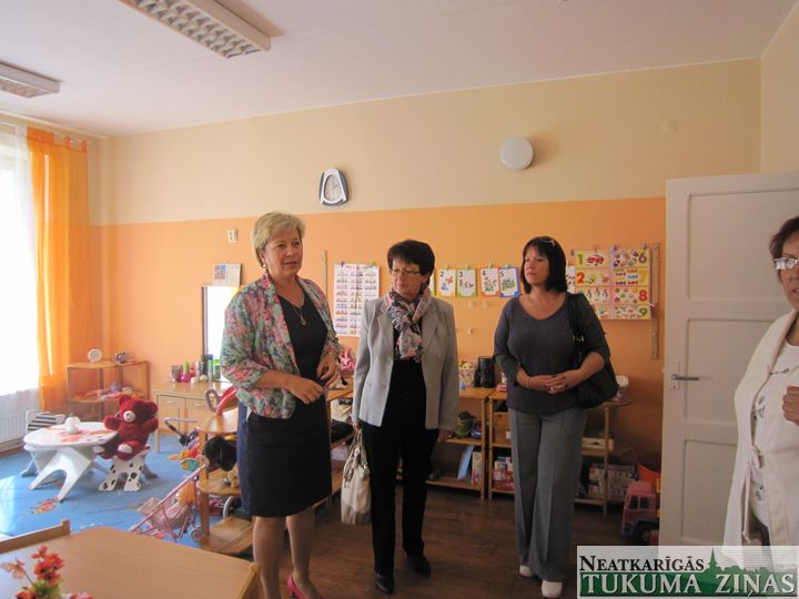 Engures pirmsskolas izglītības iestāde «Sparīte» Izglītības pārvaldes darbinieces sagaidīja bērnudārza vadītāja Sandra Ozoliņa un novada domes priekšsēdētāja vietnieks Andris Kalnozols. Te redzamais pirmais jaunums – visām nojumēm grīdas ir nomainītas. Tiek pabeigta jaunās, interaktīvas klases iekārtošana. Bērnudārzā izremontēts ēdināšanas bloks.