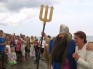 Lapmežciemā nav zudusi labā tradīcija sagaidīt Neptūnu jūras krastā. Gan lieli, gan mazi vēlējās ar vareno jūras valdnieku nofotografēties. Tad Neptūns ar savu svītu devās uz stadionu, kur viņu gaidīja Mildiņa un Oskars. Šeit tika sveikti svētku dalībnieki un atbalstītāji, uzrunu teica novada domes priekšsēdētājs Gundars Važa. Savukārt Neptūns solīja – kamēr jūrā ies kaut vai viena laiva, jūras un zvejnieku svētki būs.