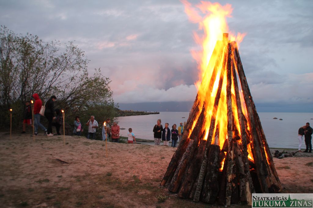Bet pasākums, kas Latvijas mērogā, sestdien norisinājās Engurē. Tur, pie Dienvidu mola, bija uzslieta skatuve, kur interesentiem, piesēdušiem ugunskura pakājē, bija iespēja klausīties zināmus vai mazāk pazīstamus skaņdarbus skolēnu simfoniskā orķestra izpildījumā. Orķestrī bija apvienojušies Baldones un Vecumnieku jaunieši, ko vada un diriģē Solvita Loka. Skolēnu orķestra uzstāšanās bija kā ievads jaundarbam, ko īpaši šim pasākumam un vienlaikus – Baltijas valstu simtgadei radījis komponists Jēkabs Nīmanis un dzejniece Inga Gaile. Tas bija skaņdarba «Līdzi man nāc» pirmatskaņojums, kas kā veltījums jūrai vienlaikus norisinājās Vārvē, Rīgā, Ainažos, Saulkrastos un citviet piekrastē. Skaņdarba vokālā partija Engures koncertā, brīdī, kad pie jūras jau bija pavisam satumsis, tika uzticēta grupas «Menuets» ilggadējam solistam Adrianam Kukuvasam. Bet. lai radītu vēl gaišāku noskaņu, īsi pēc koncerta uzstājās meiteņu trio, kas burtiskā nozīmē spēlējās ar uguni («Athare fire») – kontrolētām liesmām lika dejot tautas melodiju pavadījumā.