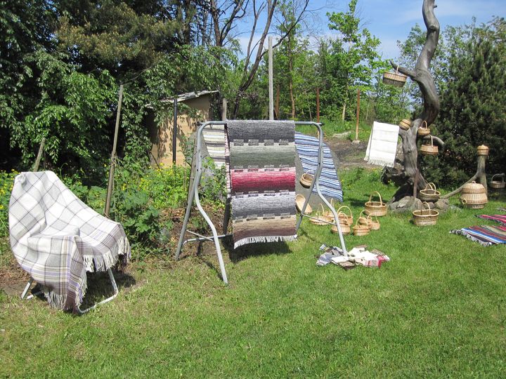 Engures novada Ragaciema «Skarās» pagājušās nedēļas nogalē bija sarīkota jauka brīvdabas izstāde. Par šo pasākumu tā iniciatore Irēna Skaraine jau iepriekš bija paziņojusi cieminiekiem. Aplūkot audējas Maijas Veinbergas darbus un Dailas Šķiestas pinumus bija ieradies kupls interesentu pulciņš. Izstāde bija iekārtota brīvā dabā – krāsainie kājceliņi izklāti zaļā zālītē, groziņi rotāja kokus un krūmus. Pie limonādes glāzes un Irēnas kundzes ceptā svītraina keksa (arī Maijas austie kājceliņi bija svītraini) notika jauka patērzēšana mākslinieka Oļega Skaraiņa pagalmā. Maijas kundze stāstīja, kā apguvusi audējas prasmes, kā sāka darboties tautas mākslas studija «Engure».