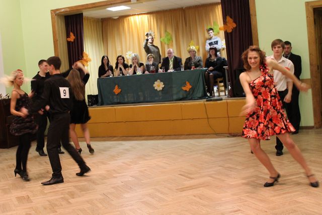 Pasākuma atklājēju gods gan tika uzticēts jaunākajai paaudzei – kā pirmie ikgadējā konkursā, dejojot valsi, uzstājās sešgadnieki Emīls Provejs un Estere Andersa. Bet uzreiz pēc viņiem trīs ceturtdaļu ritmā, uzvalkos un balles kleitās izdejoja pirmie vidusskolēnu pāri. Publika – vecāki, klases un skolas biedri, kā arī vienkārši ieinteresētie skatītāji – katru glīto atliecienu, virpuļošanu un virziena maiņu pamanīja un atzīmēja ar atbalstošiem aplausiem un ovācijām. Bet katru pāri pieteica, kā arī starplaikos nedaudz par deju vēsturi pastāstīt centās skolotāja Irēna Martuzāne, ko no pārliek ilgas runāšanas iestudēti atturēja skolotājs Artūrs Zaremba. Bargās žūrijas godā, kas, lai spētu pārskatīt deju zālē notiekošo, bija izsēdināta uz skatuves, šogad iejutās novada domes priekšsēdētāja Ligita Ginteres, skolas direktors Jānis Liepiņš, skolotāja Irēna Liepiņa, «S salona» īpašniece Sintija Leimane, friziere Aija Mizga, kafejnīcas «Līva» vadītājā Dagmāra Altenburga un aerobikas kustības entuziaste – Gita Gavariņa.