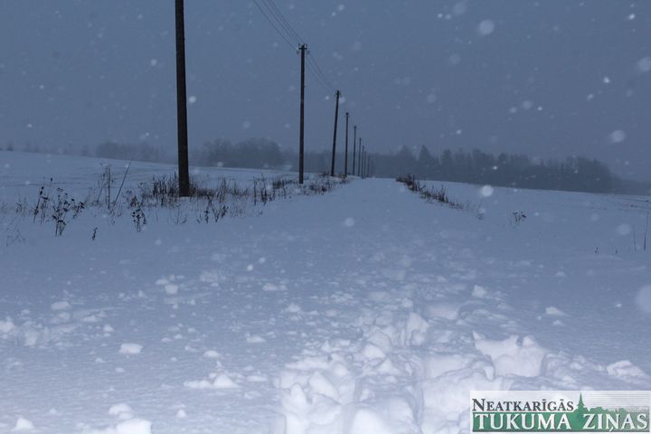 Lai gan pūta spēcīgs vējš un sniegs vēl nebija beidzis snigt, devāmies uz Jaunpils novada Jurģiem, lai paši iemēģinātu, cik ceļš ir izbraucams, un ja nē, tad – kā izbrienams.