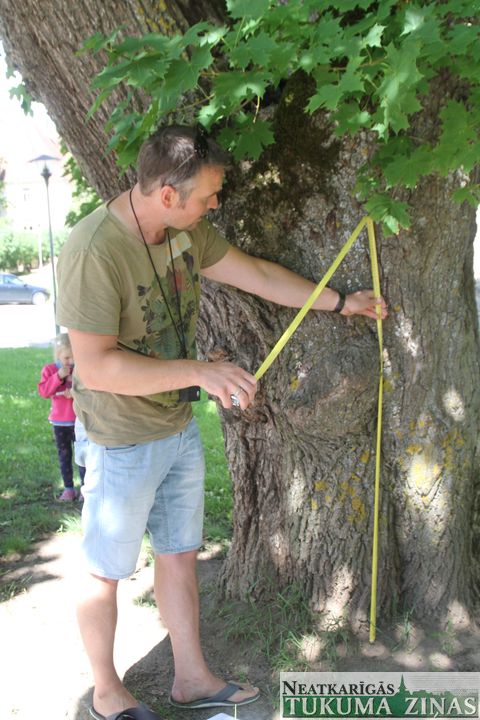 Bet pirms “doties dabā”, G. Leiburgs Jaunpils pils pagalmā nedaudz pastāstīja, kur un kā meklēt informāciju par dižajiem kokiem un kā dižākos nosaka. Izrādās, pats būtiskākais ir izmērs – augstums un resnums, un ne vienmēr vecākie koki ir arī tie paši iespaidīgākie. Vēl jāņem vērā koka suga, jo tai katrai ir savi resnuma standarti, kas tos padara par dižkoku.
