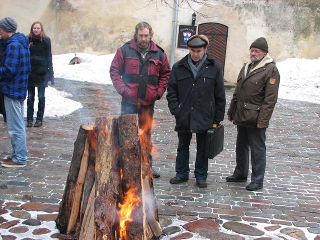 Savukārt simboliskā ugunskura aizdegšana pagalmā tika uzticēta vienam no barikāžu dalībniekiem – Aivaram Miķelsonam. Sildoties pie tā liesmām, dzirdams bija ne viens vien stāstiņš no tiem, kuri šo Latvijas vēstures lappusi vēl itin labi atceras. Piemēram, Rasma Reimane, kaut pārsvarā jau uz barikādēm stāvēt aicināti bija vīri, pirms gadiem 20 kopā ar citiem jaunpilniekiem sargājusi televīzijas torni. Savukārt Maija Krastiņa tepat uz vietas Jaunpilī rūpējusies, lai visi barikāžu dalībnieki būtu kārtīgi paēduši. “Pils pagalmā pat tolaik gulējām uz dīvāna, lai visu paspētu,” stāsta Maijas kundze un nenoliedz – ja būtu bijis vajadzīgs, piedalītos arī cīņās – “Un Rubiks tad kārtīgi dabūtu ar pannu!” viņa ir tieša.