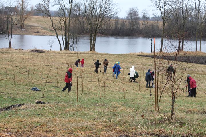 Lietus nebija šķērslis arī viesatnieku iecerei stādīt kokus pie Viesatu upītes vietā, kur vietējie karstās vasarās peldas. To, vai bērziņi tiek zemē dēstīti kā paredzēts, pieskatīja darbu koordinatores Guna Misāne un Biruta Šteina, kas salijušos talkotājus vēl pēc tam cienājušas arī ar siltu zupu.