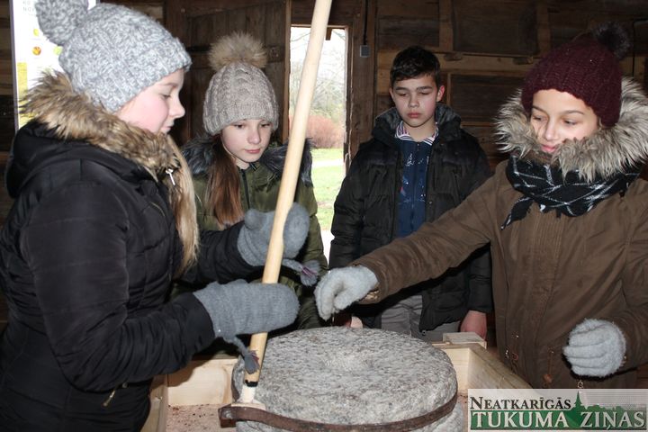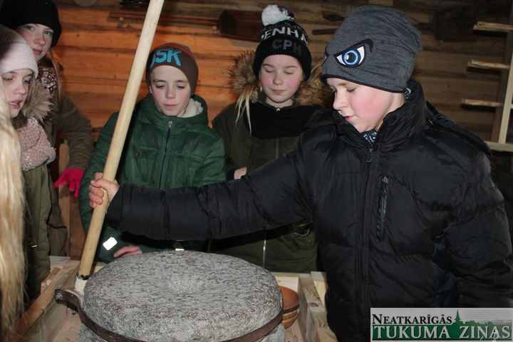 Velta Murāne, tekājot starp istabu, kur viss sagatavots sviesta kulšanai, un klēti, kurā bērni čakli rullē smaržīgo piparkūku mīklu, stāsta, ka decembrī Pastariņa muzejā, ir ko noskrieties. Sagaidīt ziemas Saulgriežus ar visām tiem piederīgajām izdarībām ir muzeja sena tradīcija. 21. decembrī Pastariņa muzejā to visu un vēl vairāk piedzīvoja arī Tukuma 2. vidusskolas 6. a klase un viņu skolotāja Ināra Freimane. Gan rotaļās gāja, gan kopā ar ansambli «Mežezers» uzdziedājās, miltus mala un Skaidrītes Stalbergas vārītos zirņus pagaršoja.
