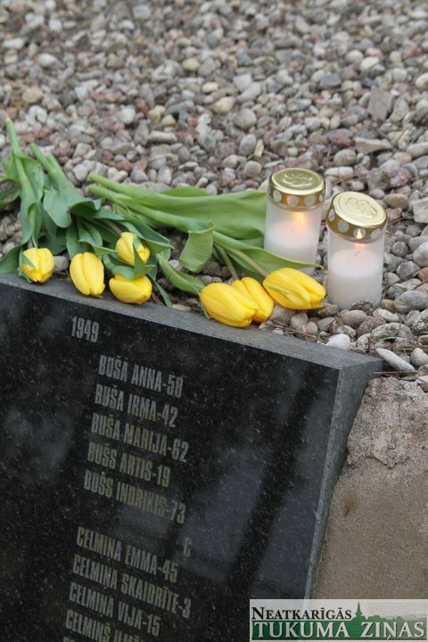Dienas pirmajā pusē bijām klāt piemiņas pasākumos Degolē, Tumē un Vecmokās, ko organizēja Tumes un Degoles pagastu pārvalde. Pēcpusdienā piemiņas vietā pie Tukums II dzelzceļa stacijas pulcējās vairāk nekā simts cilvēku, lai piedalītos atceres pasākumā. Dzeju runāja Dace Lebeda un Agita Stutiņa no Tukuma kultūras nama. Savā uzrunā Tukuma Represēto biedrības pārstāve Ināra Skrube dalījās atmiņās par Sibīrijā piedzīvoto. Viņa uzsvēra, ka lielākā daļa no tiem represētajiem, kas vēl dzīvi – tika izsūtīti kā bērni. No toreizējā Tukuma rajona 1949. gada 24. martā tikuši izsūtīti ap 1660 cilvēku – vairāk nekā 500 ģimenes.
