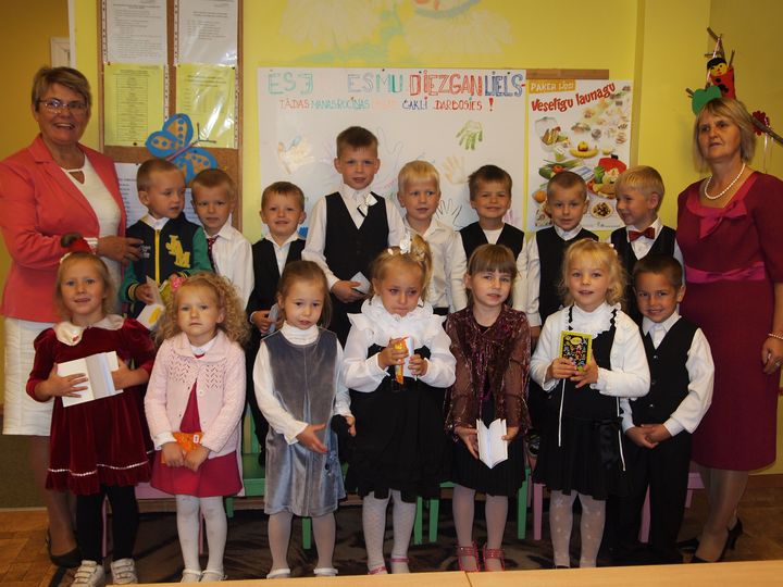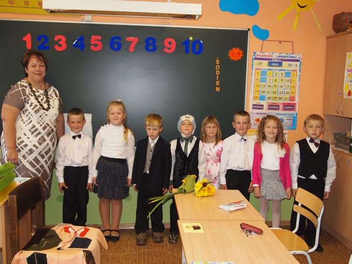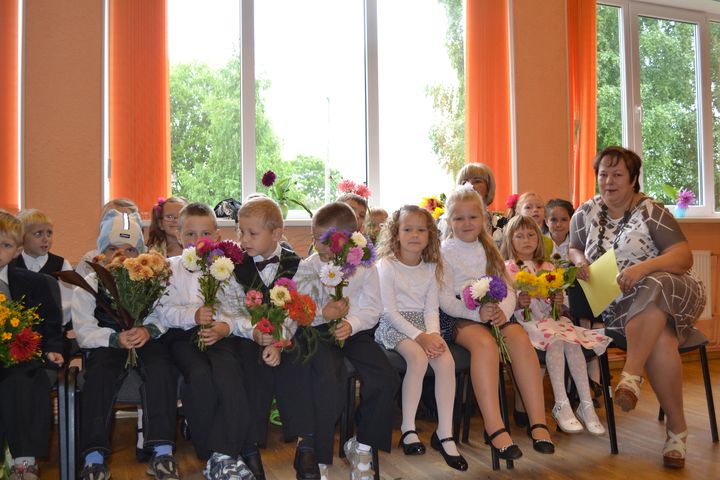 Atkalredzēšanās prieks pēc vasaras brīvlaika lielai daļai bērnu licis pamosties jau agri, agri – tā savā starpā pirms svinīgā pasākuma vecāki stāsta. Šogad mācības 1. klasē uzsāk 9 jaunie skolnieciņi. Skolotāja nedaudz bažījas, kā būs ar tautas deju dejošanu, jo klasē tikai divas meitenes, bet pārējie braši puikas. Direktorei Inai prieks, ka sadarbojoties ar aktīviem vecākiem izdevies noturēt skoliņā 4. klasi un ieviest glītas skolēnu formas. Par to lielum lielais paldies Gundegai Arājai un Artim Jomertam.