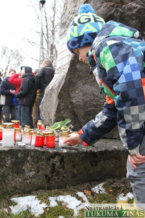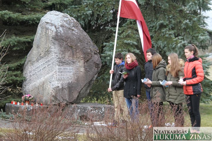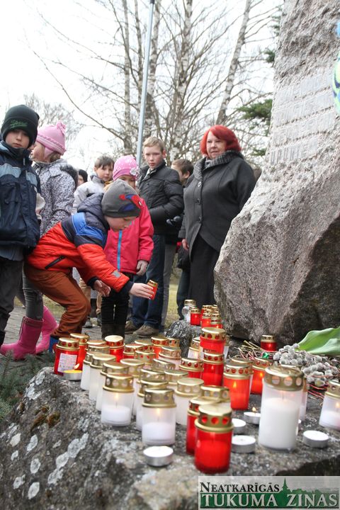 Džūkstes pamatskolas kolektīvs ceturtdien, otrās mācību stundas laikā, devās pie pieminekļa sava pagasta represētajiem, lai iedegtu svecītes un noliektu galvas, pieminot pirms 67 gadiem notikušo traģēdiju. Pasākumu vadīja pagasta kultūras dzīves organizatore Aija Ektermane.