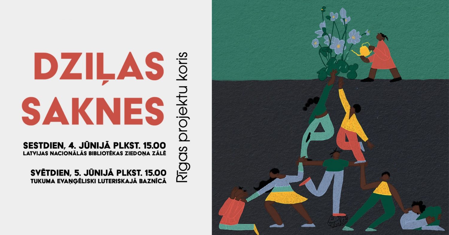 Programmā iekļautas arī dažas spiričuelu apdares, kas svarīgu lomu spēlēja Amerikas verdzības periodā. Šo skaņdarbu oriģinālais mērķis bijis saglabāt afrikāņu saknes un tradīcijas par spīti dzīvei verdzībā, kā arī komunicēt brīvības, dzimtenes un likteņa tēmas tiem, kas no verdzības izbēguši. No šī motīva tapis arī programmas nosaukums “Dziļas saknes”, kas simbolizē tautu izdzīvošanu un tradīciju saglabāšanu par spīti nebrīvei un represijām. Koncertu noslēgumā būs dzirdami arī divi 20. gadsimta jaunradīto tradīciju iedvesmoti skaņdarbi — gospelis un džeza kormūzika.