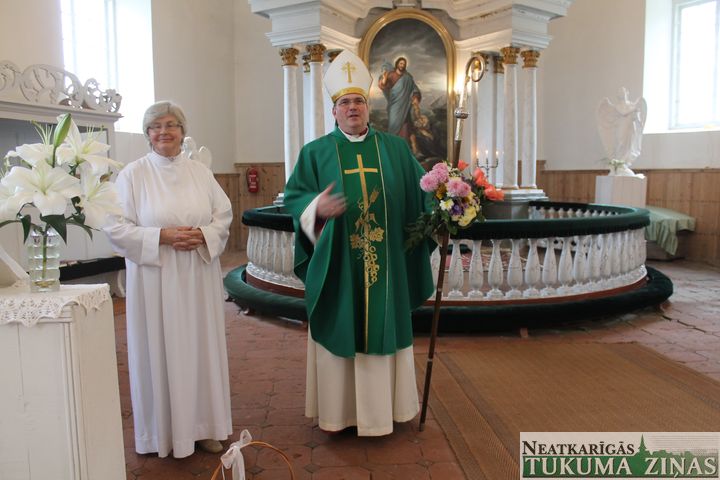 Dievkalpojumā sveikti restauratori Dace Pāže, Aigars Pilenieks un projekta vadītājs Valdis Rozenbergs, ar kuru līdzdalību veiksmīgi pabeigts gleznas un rāmja restaurācijas projekts. Vairākus mēnešus, kamēr glezna «Kristus un Sv. Pēteris uz jūras» un tās rāmis tika restaurēti, tās vietā bija attēls. Gleznai bija trīs plēsumi, kas bija radušies mehāniski, un tos ar īpašu līmi un nepieciešamības gadījumā arī ar lina audekla ielaidumiem izlaboja. Gleznai tika noņemts netīruma slānis, atjaunota laka. Gleznas restaurācija izmaksāja ap 2900 eiro, un no šīs summas 1300 eiro piešķīra Kultūrkapitāla fonds, bet pārējo naudu ziedoja draudzes locekļa V. Rozenberga ģimene.