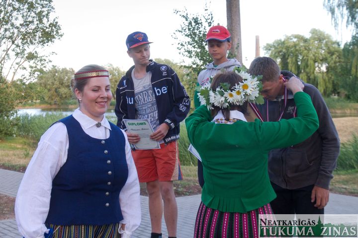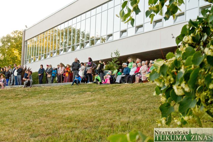 Bet citādā ielīgošana ar to vēl nebeidzās. Iesvētījuši jauno parka plāksni ar folkloras kopas «Pūrs» stiprajām dziesmām, līgotāji devās uz kultūras nama pusi, lai noskatītos svētku koncertu un suminātu labākos Slampes un Džūkstes pagasta sportistus un pašdarbniekus.