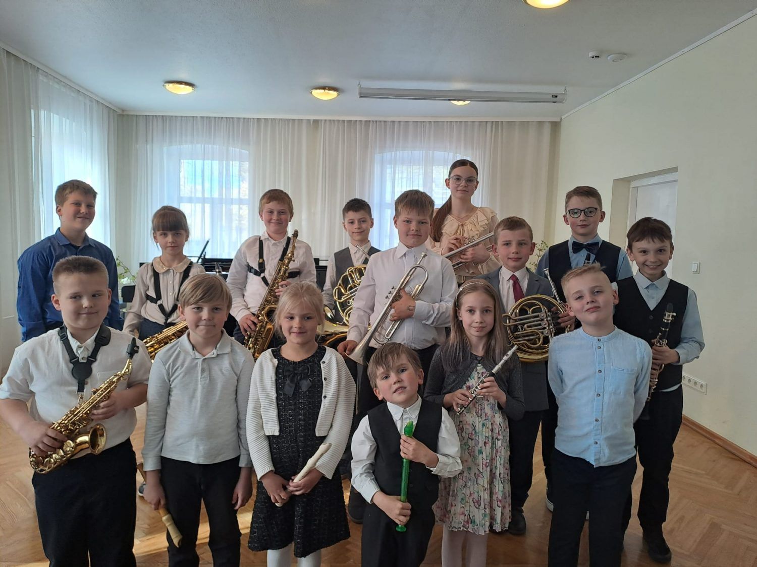 Skanēja blokflautas, pikolo flauta, klarnetes, saksofoni, mežragi, trompete un marimba mazo mūziķu solo izpildījumā. Visi priecīgi par piedalīšanos pirmajā koncertā! Paldies pedagogiem un koncertmeistarēm, kā arī vecākiem par atbalstu!