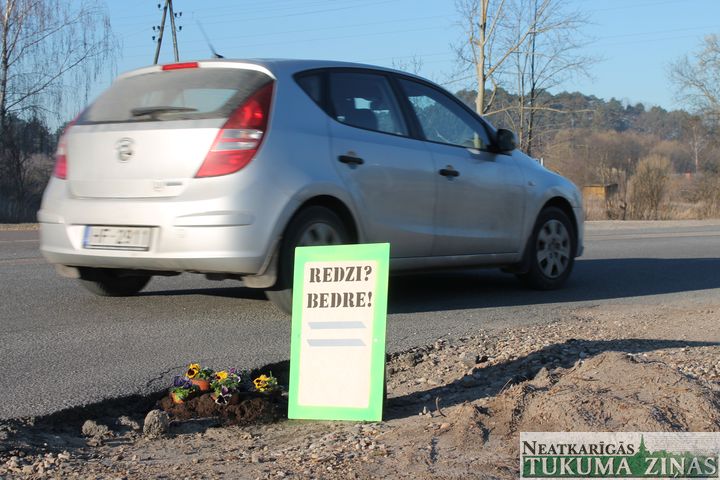 Jau trešo gadu arī Tukuma ielās kādā mirklī uzzied mazi ziediņi, pievēršot uzmanību lielākām un mazākām bedrēm. Šorīt puķes uzziedēja vairākās Tukuma ielās – Durbē, Revolūcijas ielā, Tirgu ielā un citur.