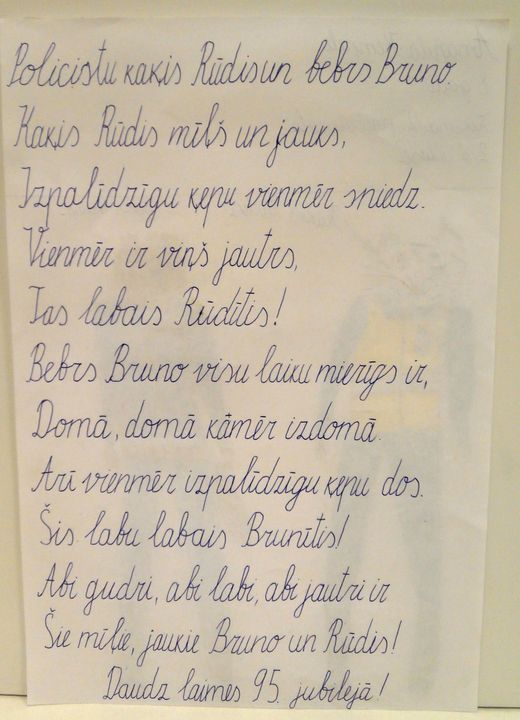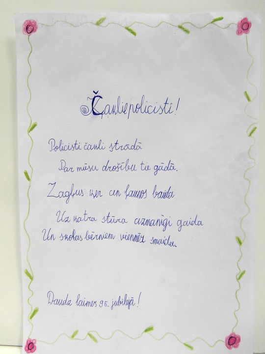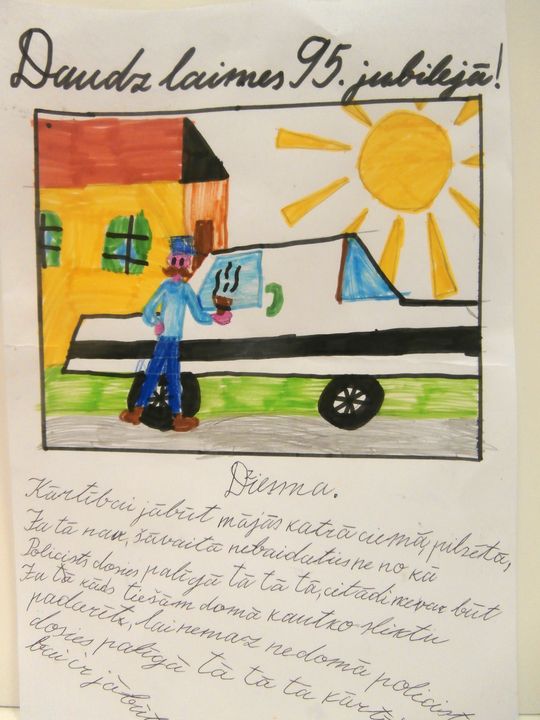 5. decembrī Valsts policija svin 95. dzimšanas dienu, un par godu šim notikumam policijas darbinieki saņem gan dienesta, gan pašvaldību, gan sadarbības iestāžu apsveikumus. Taču visīpašākie apsveikumi, kā atzina Tukuma policijas iecirkņa priekšnieks Janeks Bahs, šogad saņemti no Tukuma 2. pamatskolas, Raiņa ģimnāzijas un 2. vidusskolas skolēniem, kuri piedalījās Zemgales reģiona pārvaldes izsludinātajā zīmējumu konkursā.