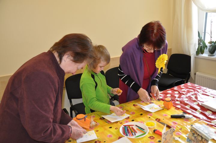 Omes darbojās radošajās darbnīcās – gatavoja saviem mīļumiem kūciņas, uzbūra skaistas apsveikuma kartītes, veidoja kompozīcijas no krāsainajām smiltīm un izmēģināja spēkus dāvanu maisiņu radīšanā. Pēc čaklās darbošanās bērni sniedza koncertu un bučas savām omēm, kas māca viņiem redzēt un sajust rīta rasu, cep raušus tā kā pogas, dod mazbērniem prieku un paveic ik darbu kā nieku. Paldies visiem vecvecākiem par kopābūšanas prieku ko sniedzāt mums – «Karlsona» kolektīvam.