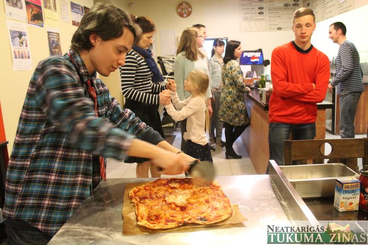 13. aprīļa vakarā picērijā «Kvazi pizza» Katrīnas laukumā Tukumā notika picas cepšanas vakars itāļu noskaņās. Lai arī picas šeit tiek ceptas katru dienu, šis vakars bija īpašs – savu picas cepšanas prasmi rādīja brīvprātīgais Leonardo Čekarīnī (Ceccarini) no Itālijas. Viņš tās cep paša priekam – kā daudzi Itālijā, un bija apņēmies ierādīt savu prasmi citiem. Kā uzzinājām, tāds arī šībrīža brīvprātīgo darba nosacījums – ne tikai palīdzēt iestādei vai organizācijai, kurā darbojies, bet arī jārāda savas prasmes citiem, kas, iespējams, nemaz nav saistīti ar brīvprātīgo darbu.