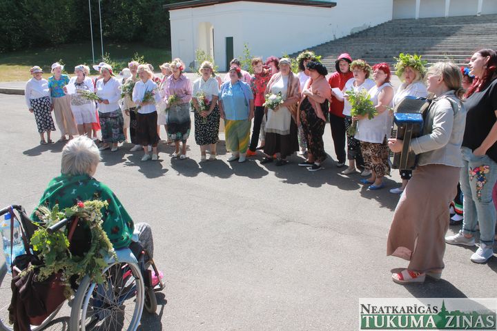 Kā aktieri, tā pārējie aprūpes centru dalībnieki un arī viesi bija padomājuši par Līgo svētku noformējumu – apģērbu, vainadziņiem un ziedu pušķiem. Savukārt īpašo noskaņojumu radīja līgo dziesmas, kuras izdziedāja vokālie ansambļi «Prelūdija» no Jaunsātiem un «Sidrabrasa» no Tukuma, Elga Melgaile no aprūpes centra «Ķīši», biedrība «Klausies ar sirdi» un pārstāvji no Dobeles dienas centra «Solis».