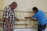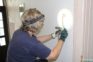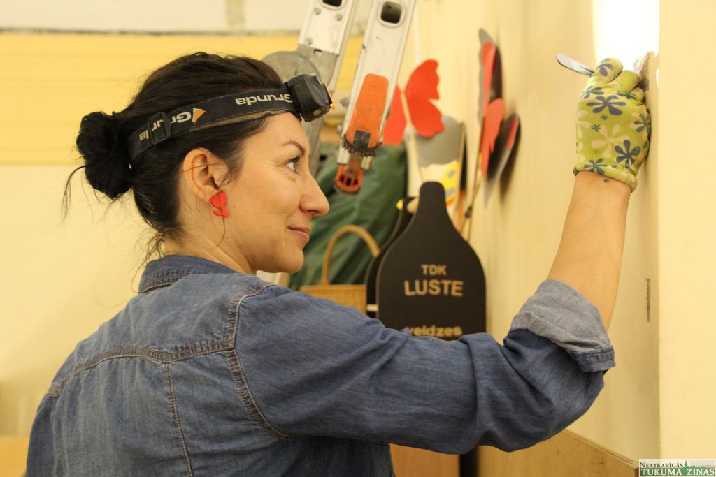Mēs pabijām skolā brīdī, kad izpētes darbs bija nesen kā uzsākts. Lai arī ārā bija gaiša diena, pētnieces, strādājot gaitenī un uz balkona – bija “bruņojušās” ar galvas lukturīšiem, kuru precīzais stars palīdz skaidrāk saskatīt krāsas nianses.