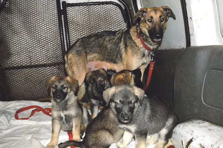 Kāds atkal nav bijis atbildīgs un izdarījis pāri sunītei, tā nav laikā sterilizēta, un, lūk, rezultāts! Cilvēki nolēmuši doties prom uz ārzemēm, mums atstājot bagātīgu pūru! Kucīte ir ļoti vāja un ar lielu nepatiku laiž pie pupiem mazos kucēnus, mazajiem asi zobiņi un tie nodara sāpes. Cilvēki bijuši saimnieka lomā tikai četrus mēnešus un tad nolēmuši aizbraukt… Ja esat gatavi mums palīdzēt, piezvaniet 90006089, jo tik kuplai ģimenei, lai atkoptos, dienā tai būtu nepieciešami septiņi labdarības zvani. Mazajiem apetīte kā lācēniem, un vakarā, kad nolikuši ģimeni gulēt, aiznesām viņiem divas prāvas bļodas ar konserviem un sauso barību, nebijām paspējuši būra durvis aizvērt, kad bļodas tukšas! Palīdziet mūsu dižģimenei uz pekām tikt!