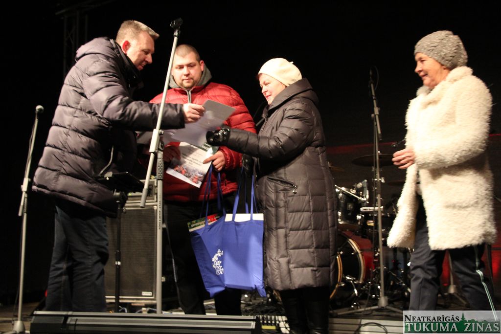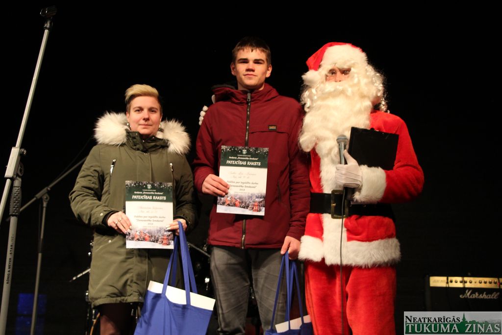 Jau tradicionāli, Vecajam gadam aizejot un Jauno sagaidot, tukumnieki pulcējas Brīvības laukumā pie lielās svētku egles, lai gadumijā būtu kopā un vienlaikus sveiktu arī konkursa «Ziemassvētku smukums 2019» laureātus. Šī gada svētku programmā kopā ar Salatēvu uz skatuves kāpa arī grupa «Henrix band» un dīdžejs Sniegs.
