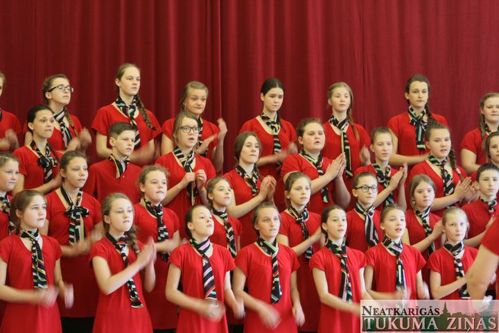 Rezultāti: Tukuma Raiņa ģimnāzijas jauktais koris (diriģente Rasma Valdmane) – I pakāpe, 44,05 punkti, Tukuma 2. pamatskolas zēnu koris (Dace Perševica) – I, 42,5 p., Jaunpils vidusskolas 5.-9. klašu koris (Mārīte Kabaka) – II, 36,85, Tukuma E. Birznieka-Upīša 1. pamatskolas koris (Valda Liepiņa) – III, 29,3 p., Zemgales vidusskolas 5.-12. klašu koris (Gita Vanaga, Inga Zariņa) – II, 33,25 p., Lapmežciema pamatskolas koris – II, 38,15 p., Engures vidusskolas 5.-9. klašu koris – I, 42,63 p., Tumes vidusskolas 5.-12. klašu koris (Sanita Apine) – I, 44,05 p., Tukuma 2. pamatskolas meiteņu koris (Ritma Zāģere) – I, 46,55 p., Tukuma Raiņa ģimnāzijas 7.-9. klašu koris (R. Valdmane) – I, 42 p.