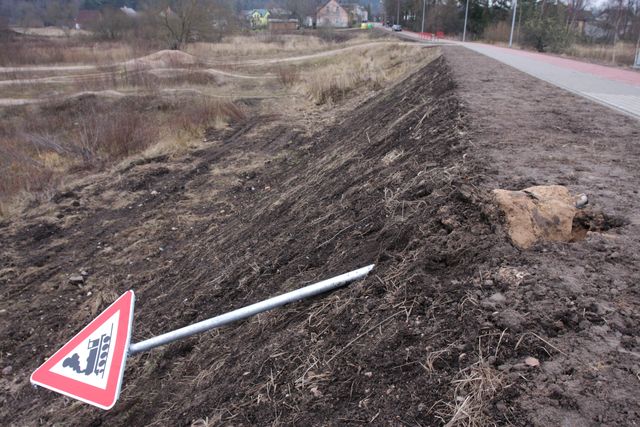 Šodien tika konstatēts, ka pagājušonedēļ ekspluatācijā nodoto Kuldīgas ielas veloceliņu apskādējuši vandaļi – izrauta dzelzceļa brīdinājuma ceļa zīme un izmētātas atkritumu urnas, no kurām viena šorīt atrasta upē.