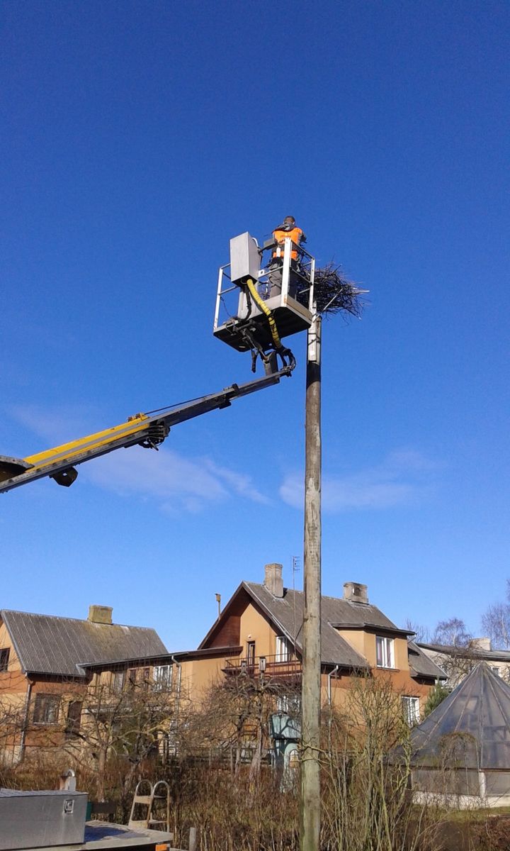 Pērnais pēc stārķu aizlidošanas tika mainīti elektrības vadi un lielākā daļa ligzdas nogāzta zemē. Taču – vārds pa vārdam – un tika panākta vienošanās ar pašvaldības pārstāvjiem, ka stārķiem tajā pat vietā uztaisīs jaunu ligzdošanas vietu. Tas arī tika izdarīts.