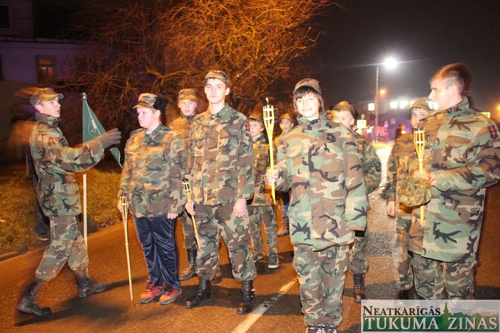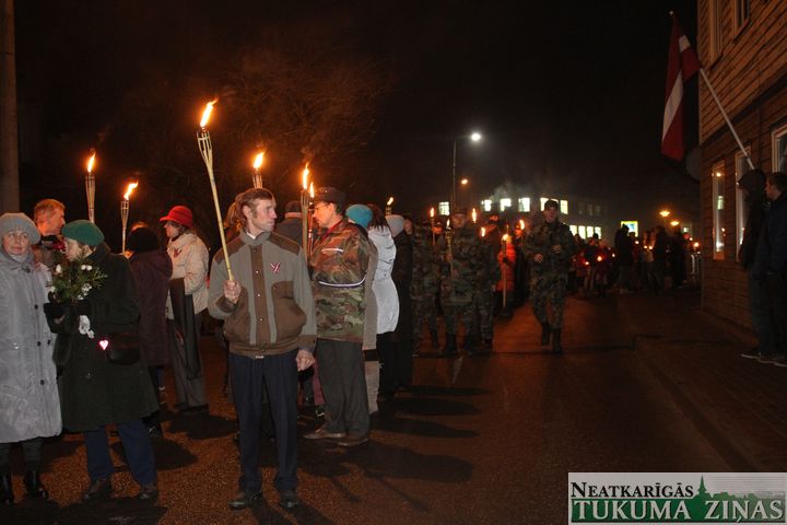 Lāčplēša dienas Lāpu gājienā pie Tukuma novada domes 11. novembrī pirms 18.00 teju tūkstotis ļaužu pulcējās. Pārsvarā jaunieši. Ik ielā – Pasta, Meža un Kurzemes, pa kuru lāpneši gāja, tiem pievienojās lieli un mazi, jauni un veci – visi, kas varoņu piemiņu godā. Ļaudis līdz Kārļa Zemdegas piemineklim Puisītis Meža kapos gāja. Lāčplēša dienā, latviešu tautas uzvaras svētkos klātesošos sveica novada domes priekšsēdētājs Juris Šulcs, jaunsardze Elīna Pļaviņa, vēl daudzi skaļi un savās sirdīs pie sevis. Pasākumu vadīja Liene Venterzute, muzikālo skanējumu šoreiz sarūpēja Tukuma Vakara un neklātienes skolas skolēni un skolotāji.