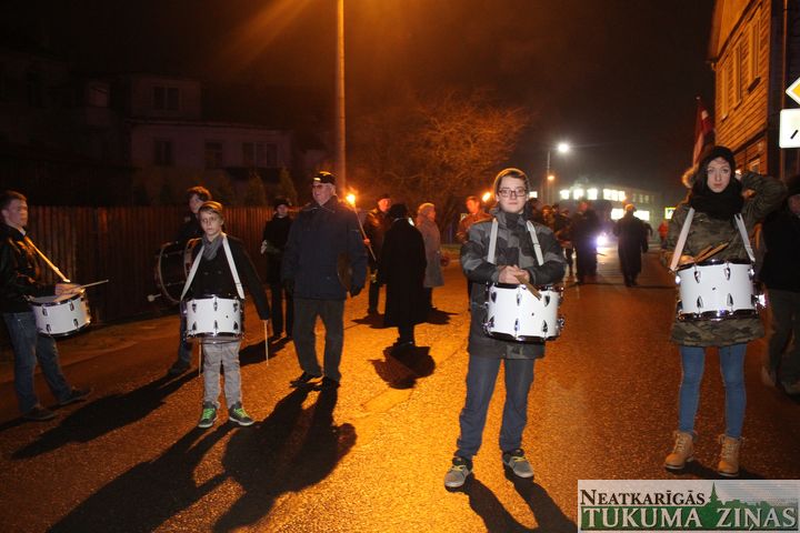 Lāčplēša dienas Lāpu gājienā pie Tukuma novada domes 11. novembrī pirms 18.00 teju tūkstotis ļaužu pulcējās. Pārsvarā jaunieši. Ik ielā – Pasta, Meža un Kurzemes, pa kuru lāpneši gāja, tiem pievienojās lieli un mazi, jauni un veci – visi, kas varoņu piemiņu godā.