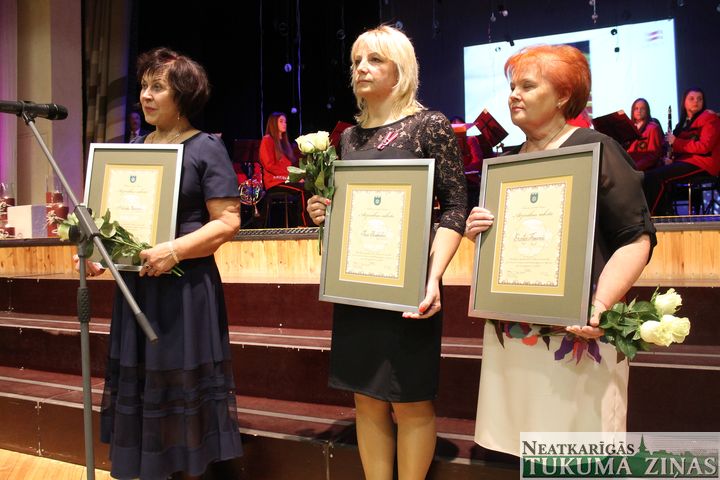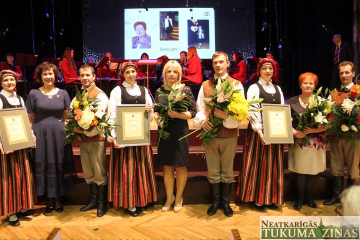 Tukuma kultūras namā tukumniekus un viesus uzrunāja Tukuma novada domes priekšsēdētājs Ēriks Lukmans. Viņš arī sveica trīs aktīvas Tukuma novada iedzīvotājas, pasniedzot Tukuma novada domes balvu «Atzinības raksts» – Guntai Krecerei, Inai Jackovskai un Astrīdai Bērziņai.