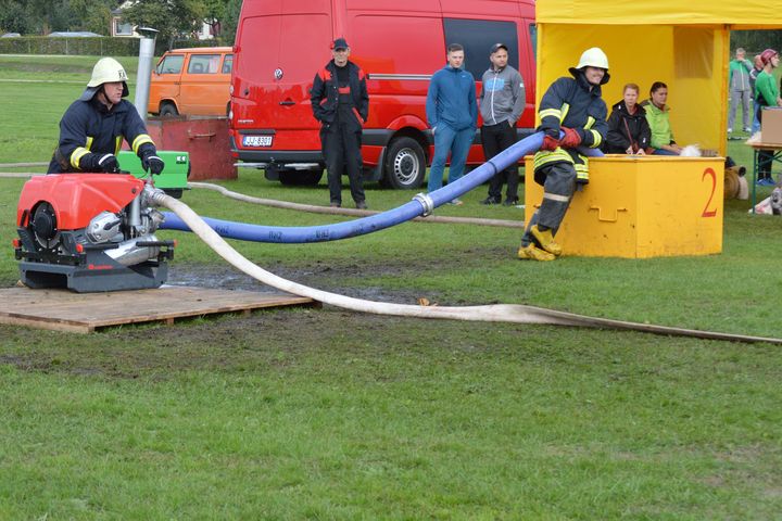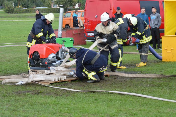 Dalībniekiem komandās nācās apliecināt savas ugunsdzēsības iemaņas šļūteņu izvilkšanā, savienošanā, motorsūkņa darbināšanā, ūdens padošanā pa šļūtenēm no ūdenstilpnes un mērķu piepildīšanā ar ūdeni. Rezultātu ieskaitīja tikai tad, ja visas darbības izpilda precīzi. Šajās sacensībās par uzvarētājiem kļuva Jaunpils brīvprātīgie ugunsdzēsēji Māra Lagzdiņa vadībā. Turklāt viņu rezultāts – 43,72 sek. – bija pārāks par vairumu profesionālo komandu. Jaunpilniekiem – arī ceļojošais kauss, turklāt – atkārtoti. Izcilus rezultātus šais sacensībās guva arī Zantes brīvprātīgie ugunsdzēsēji. Pirmkārt, tāpēc, ka šo nelielo Kandavas novada pagastu Ievas Ābeles vadībā pārstāvēja trīs komandas – jauniešu, sieviešu un vīru komanda. Un Zantes vīri izcīnīja trešo vietu ar rezultātu 51,48 sek. ”Sacensības bija tiešām ļoti labi organizētas. Par katru dalībnieku bija padomāts, katram bija pa īpaši gatavotai medaļai. Šī bija ļoti laba pieredze, īpaši jauniešu komandām, lai spētu saliedēti darboties komandā, koncentrēties un parādīt labāko no tā, kas apgūts treniņos,” tā I. Ābele. Zantes sieviešu komanda sacensības beidza ar rezultātu 1 min un 15, 48 sek, Zantes jaunieši – 59,11 sek., Engures meitenes – 1 min 10,39 sek., Engures jaunieši – 49,11 sek., bet Lapmežciema vīru komandas gala rezultātu – 2 min 7,59 sek. – ietekmēja viena liktenīga kļūda – otrādi apvērsts šļūteņu sadalītājs…