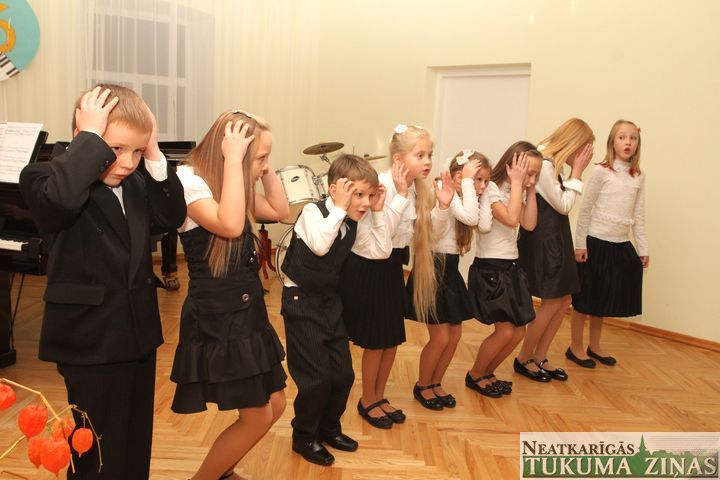28. novembrī, mūzikas skolas zālītē skanēja akordeonu mūzikas skaņas un dziesmu melodijas. Deviņi akordeonisti un vēl 51 dziedātājs! Palieli un pavisam maziņi, mūzikas ābečnieki. Skolotājas – akordeonistu pavēlniece Daiga Akmane-Morica-Okmane un skolas kora un ansambļa vadītāja Ināra Vičmane – pirms koncerta nevaļīgas. Tik daudz jāiespēj, vēl pēdējie novēlējumi audzēkņiem pirms uzstāšanās jāsniedz.