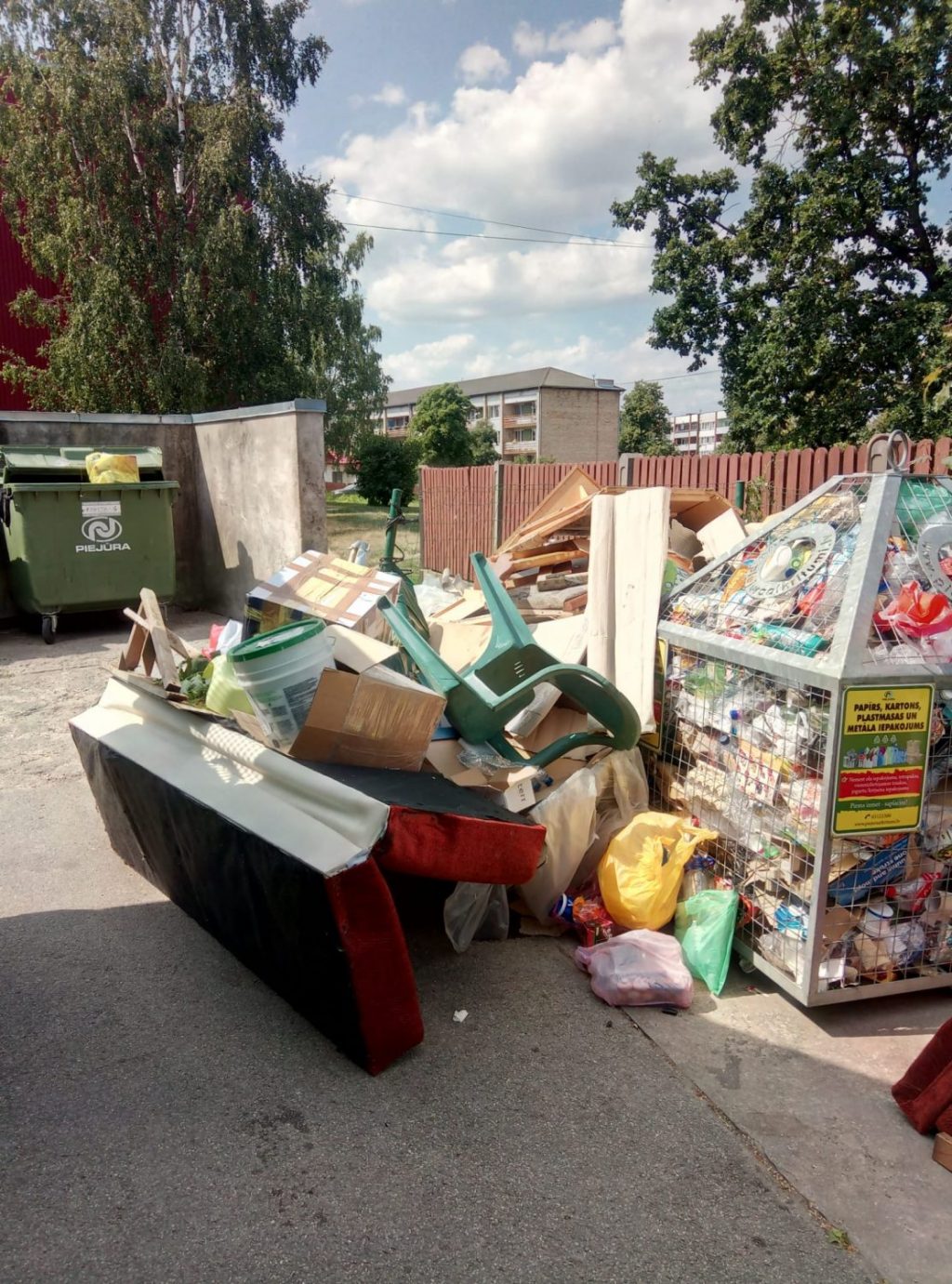 Jau atkārtoti saņemam iedzīvotāju sūdzības par to, ka atkritumu konteineri pie daudzdzīvokļu mājām vai ik dienas lūst no atkritumu pārpilnības. Kā stāsta iedzīvotāji, nepietiek ar to, ka atkritumus viņu mājas konteineros met katrs, kam nav slinkums, bet regulāri tur tiek novietoti arī vairs nelietojamas lielgabarīta lietas.