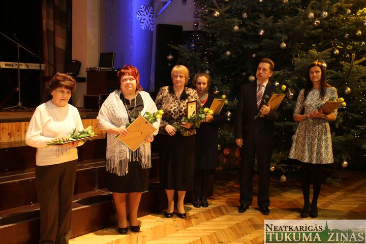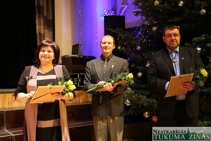 Tukuma novada domes Pateicības rakstu par aktīvu, pašaizliedzīgu darbu, kas veicinājis novada attīstību, atpazīstamību un iedzīvotāju labklājību, saņēma Irlavas vidusskolas sporta skolotājs Madars Breide – par izciliem rezultātiem veterānu sporta sacensībās soļošanā un aktīvu darbību sportā un kultūrā, IKU «Eduards» īpašnieks Aldis Limanskis – par nesavtīgu finansiālu atbalstu Irlavas florbola komandām, Lestenes pagasta feldšeru vecmāšu punkta medmāsa Ilze Ratniece – par nesavtīgu palīdzību veselības saglabāšanā Lestenes pagasta iedzīvotājiem, SIA «Pure chocolate» darbiniece Ilva Pļaviņa – par veiksmīgu sadarbību ar pašvaldības iestādēm, Gundega Arāja – par pašaizliedzīgu un aktīvu darbu Pūres pamatskolas padomē, Ilze Roze-Vītola – par aktīvu un radošu darbu, sadarbojoties ar Jaunsātu skoliņu, Daila un Bruno Trubiņi – par rožu audzēšanas popularizēšanu un Tukuma novada atpazīstamības veicināšanu, SIA «Kalnāji» valdes priekšsēdētājs Vladislavs Butāns – par ieguldījumu lauksaimniecības attīstībā un atbalstu kultūras un saimniecisko jautājumu risināšanā Slampes pagastā, SIA «Stiga RM» valdes priekšsēdētājs Andris Ramoliņš – par atbalstu Džūkstes pamatskolas maznodrošinātajiem skolēniem, SIA «Dorno Būve» valdes loceklis Ignats Lahs – par sadarbību ar Slampes un Džūkstes pagastu pārvaldi, ģimenes ārste Santa Zaļmeža – par veselīga dzīvesveida popularizēšanu Tumes pagastā, z/s «Kalnozoli» vadītājs Edgars Račkovskis – par veiksmīgu uzņēmējdarbību un sabiedrisko aktivitāšu atbalstu Tumes pagastā, SIA «Nītava» valdes priekšsēdētājs Edvards Beinarovičs – par ieguldījumu lauksaimniecības attīstībā un sabiedrisko aktivitāšu atbalstu Tumes pagastā, Latvijas Neredzīgo savienības Melodeklamācijas grupa – par aktīvu sadarbību ar Tukuma nevalstiskajām organizācijām, Leokādija Māliņa – par ilggadēju pašaizliedzīgu audžuģimenes un aizbildņa pienākumu pildīšanu, Tukuma novada sociālā dienesta direktores vietniece Māra Gaile – par ilggadēju darbu un ieguldījumu sociālo problēmu risināšanā, Rabkeviču ģimene – par pašaizliedzīgu audžuģimenes pienākumu pildīšanu, Agita Pumpure – par izcili darinātiem latviešu tautas tērpiem deju kolektīviem «Svīta» un «Vidums», SIA «Alante» valdes locekle Agnese Ritene – par veselīga dzīvesveida popularizēšanu un veicināšanu, Irlavas un Lestenes pagastu pārvaldes vadītājs Vilnis Janševskis – par ieguldīto darbu vēstures un piemiņas vietu saglabāšanā Lestenes pagastā.