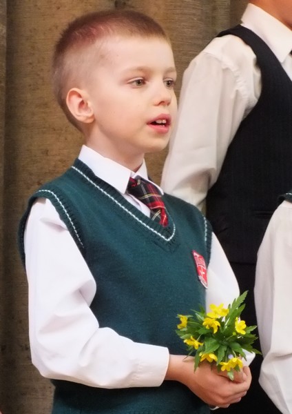 Kad publikas priekšā stājās zēnu koris, zālē iestājās bijīgs klusums, jo, jāteic, ka zēnu kori nemaz nav tik ierasta parādība mūsdienu kora mūzikas pasaulē. Taču mūsu skolas zēni sen ir pierādījuši, ka ar savu dziedāšanu spēj aizkustināt ne viena vien klausītāja sirdi. Šoreiz viņi dziedāja Ērika Ešenvalda dziesmu «Kovārņu ligzda», bet, kā kora diriģentes Ingrīda Čarbarte un Anda Vilka atzina, īpaši mīļas zēniem esot liriskās dziesmas. To varēja sajust, klausoties Zigmāra Liepiņa «Dziesmu par brīnumiem», kurā zēni lika noticēt tam, ka pat slotas kāts var salapot, ja tikai to ļoti vēlas…