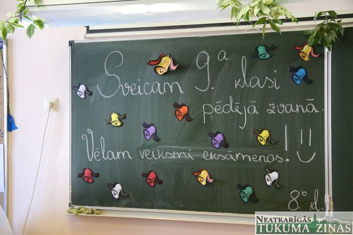 Tukuma 2. vidusskolā pēdējais zvans šodien skanēja 34 divpadsmitajiem un 44 devītajiem, skolotāju Maritas Trušinas un Īras Antones audzēkņiem.