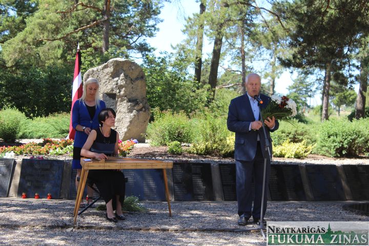 Skanot sliežu dunošajām skaņām, 14. jūnija karstajā dienā piemiņas vietā pie Tukums 2 stacijas ļaudis pulcējās, lai pieminētu komunistiskā genocīda upurus – tos mūsu novadniekus – jaunus un vecus, spēka gados un nespējīgus, pieaugušos, bērnus un sirmgalvjus –, kas 1941. gada 14. jūnijā tika izrauti no savām mājās un izsūtīti viņiem tobrīd baisi nezināmajā. Sāpju, pazemojumu, bet tomēr dzīvības alku pilnajā ceļā uz svešo un salto zemi. Pagājuši jau 77 gadi, kopš dienas, kas salauza daudzu Latvijas iedzīvotāju likteņus.