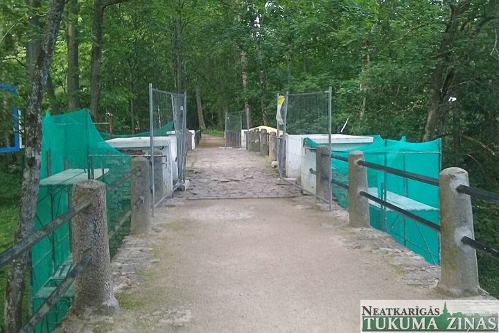 Vairākas nedēļas turpinās Durbes tilta remontdarbi |Tukumā. Tos uzticēts veikt SIA «Telms». Tiek atjaunots tilta margu un atpūtas ”kabatiņu” apmetums, vienlaikus pielabojot tilta un apmaļu mūrējumu.